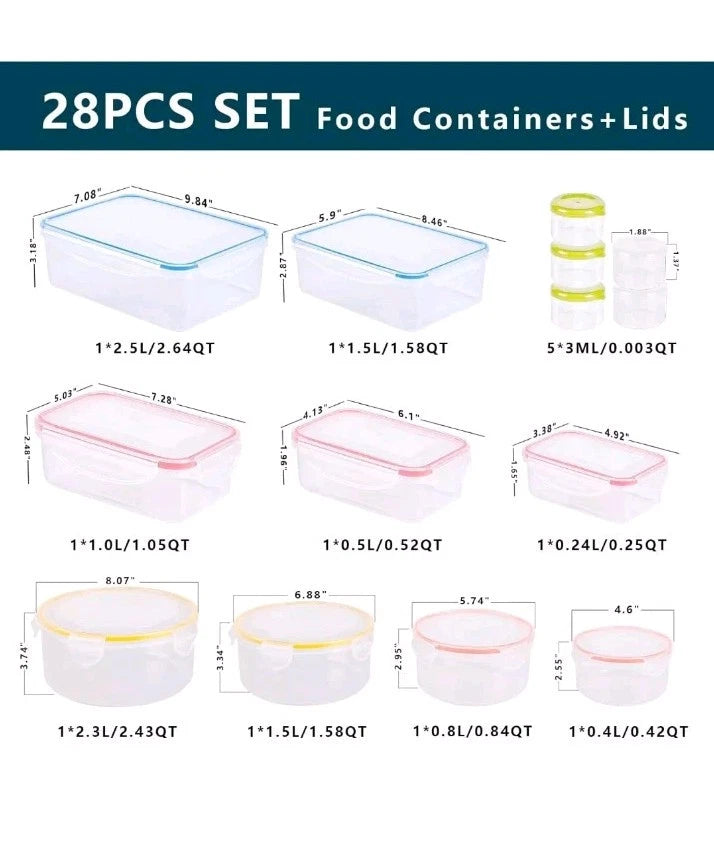 Introducing the DIDO 28-Piece food storage containers set; a comprehensive and versatile solution to your food storage needs. This expansive set includes 14 thoughtfully-designed containers matched with 14 secure lids, ensuring you always have the perfect storage solution at your fingertips. Choose from five different sized rectangular containers, four round containers and five sauce pots, each crafted to be hard-working and versatile. Whether you're preserving leftovers, planning a picnic, or simply meal-prepping, this set offers you a near-endless array of options.