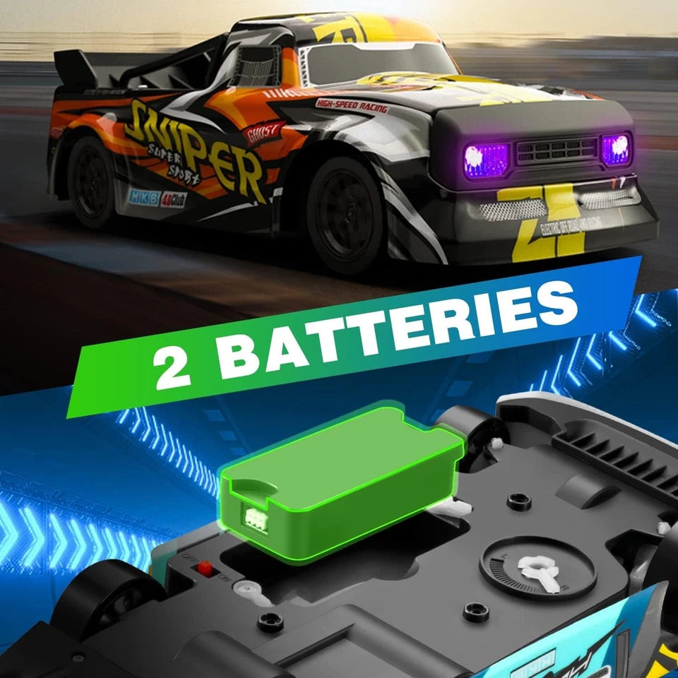 - 40 km/h super fast remote controlled car: 1:16 scale 4DRC H4 remote controlled car equipped with a powerful motor, maximum speed up to 40 km/h, brings cross-country driving experience for high-speed thrills. 2 batteries for 50 minutes of operation (25 minutes for each battery). Double the fun of the game.