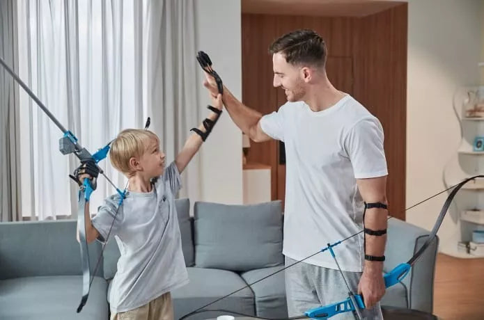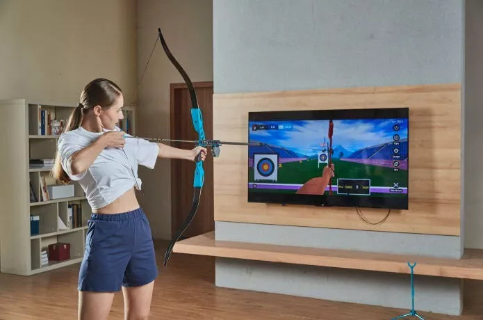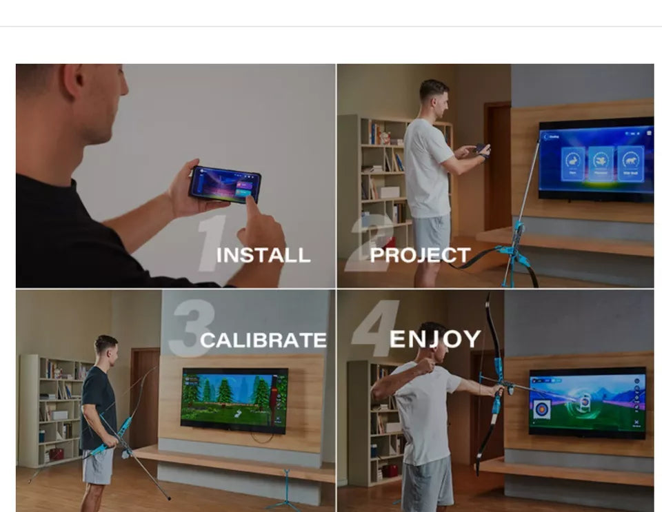 a smart virtual archery for quick and easy home archery games. It uses real recurve bows and blunt dry-firing arrows to simulate a true-to-life archery experience, making it fun and easy to experience the joy of shooting, muscle toning, and mental focus in any place at any time. Great for adults, kids, and any archer of all skills and ages!