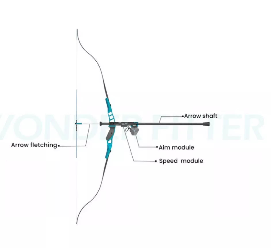 with recurve bow that’s been fitted with a shaft out front, so instead of having your arrows fly through the air towards a target, the arrow simply flies into the shaft and stays there. According to the outfit, you can remove the shaft and place it on a different bow (it houses all the sensors, too) if you’d rather use your own equipment for your practice, all while being compatible with most any type of arrow, so you can change things up if you like. Do note, maximum resistance for the bow is 20 pounds, as anything exceeding it can potentially damage the speed sensor inside the shaft.