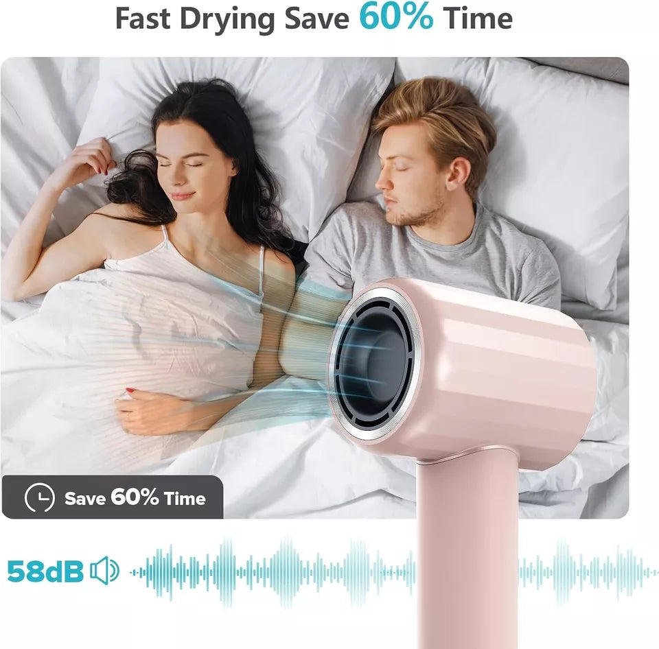 【Easy to carry & Super Low Noise】 Fentgo hair dryer weighs only 0.9 lb /407g, compact and portable, suitable for home and travel. The noise of the ionic hair dryer is only 59dB when working and does not disturb the rest of the family.