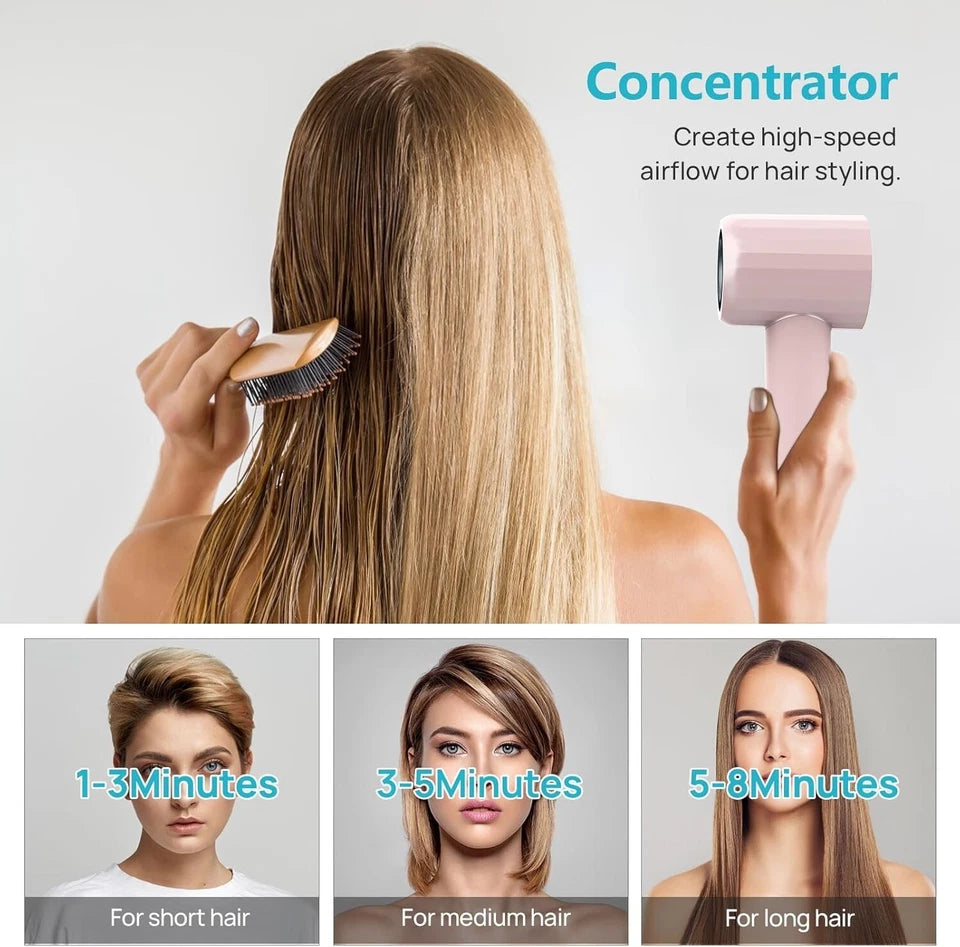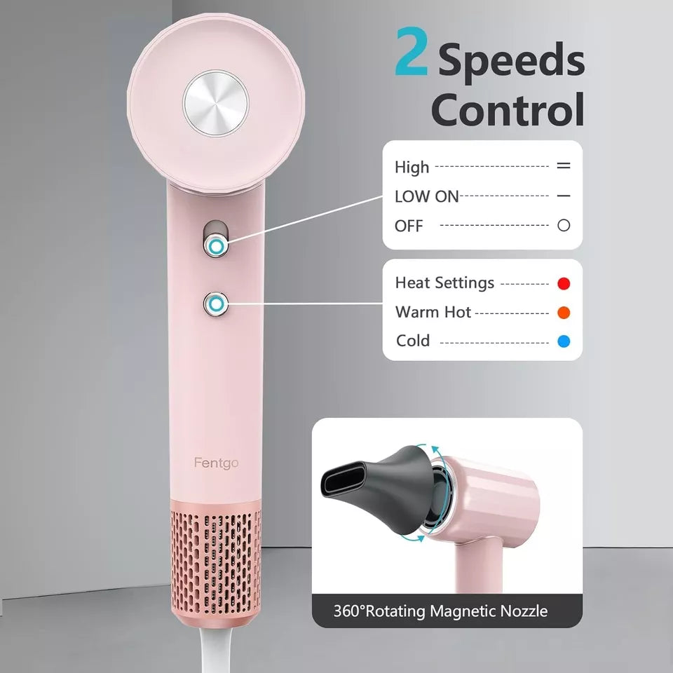 【High-Speed & Fast Drying No Heat Damage】 Fentgo High Speed Hair Dryer is equipped with 110,000RPM high speed brushless motor, provides a strong wind speed reaches 22m/s, which can quickly dry your hair in 2-8 minutes.Professional hair dryer built-in intelligent temperature control processor, real-time monitoring and regulation of high temperature, to avoid your hair from high temperature damage.