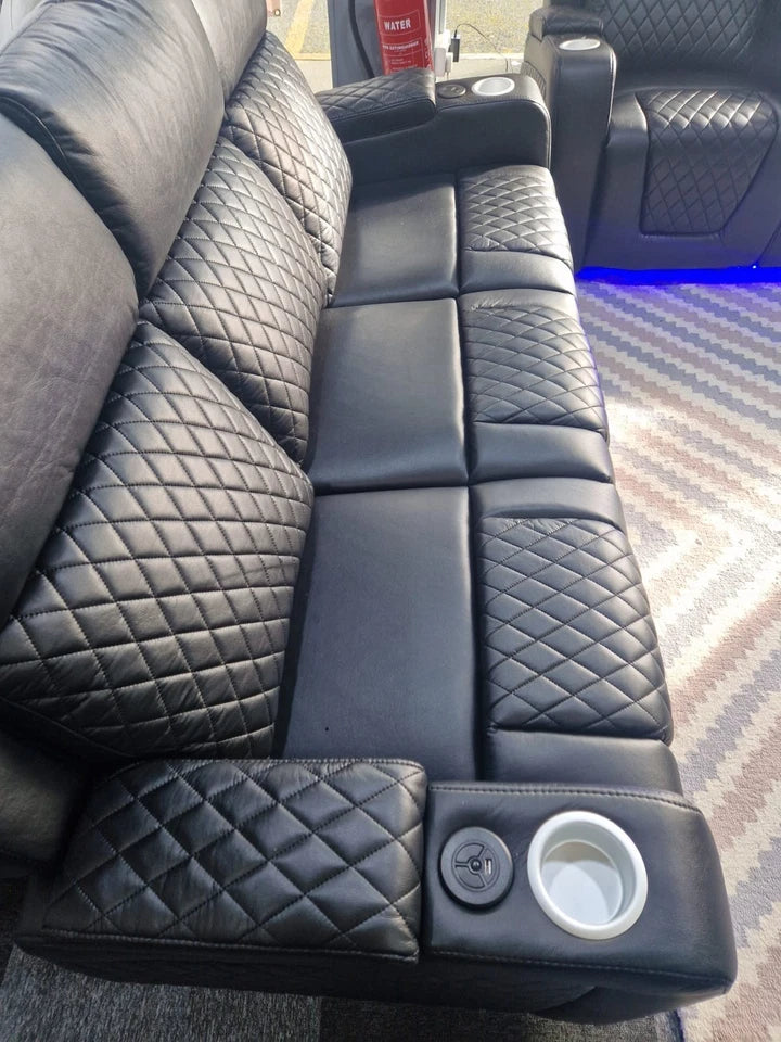 Transform your living room into a luxurious media hub with the Florida Music Electric Recliners 3+2 Seater Leather Sofa Set. Combining premium comfort with cutting-edge technology, this sofa set is designed for the modern home theater experience.