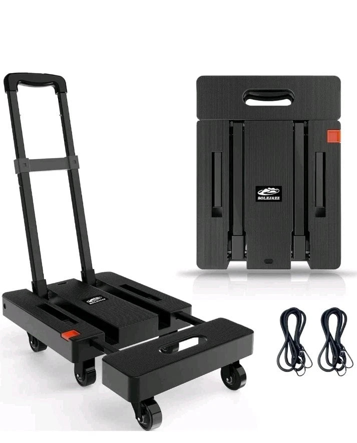 Portable & Multifunctional: This hand truck cart can be folded or unfolded in few seconds, you can take it anywhere or store it in your car or other narrow gap. Suitable for moving house, cargo handling, shopping, office daily use, business travel, airport station, luggage moving, warehouse carry, gardening, and so on.