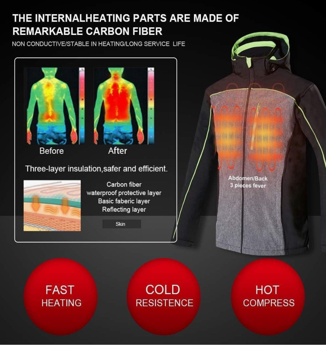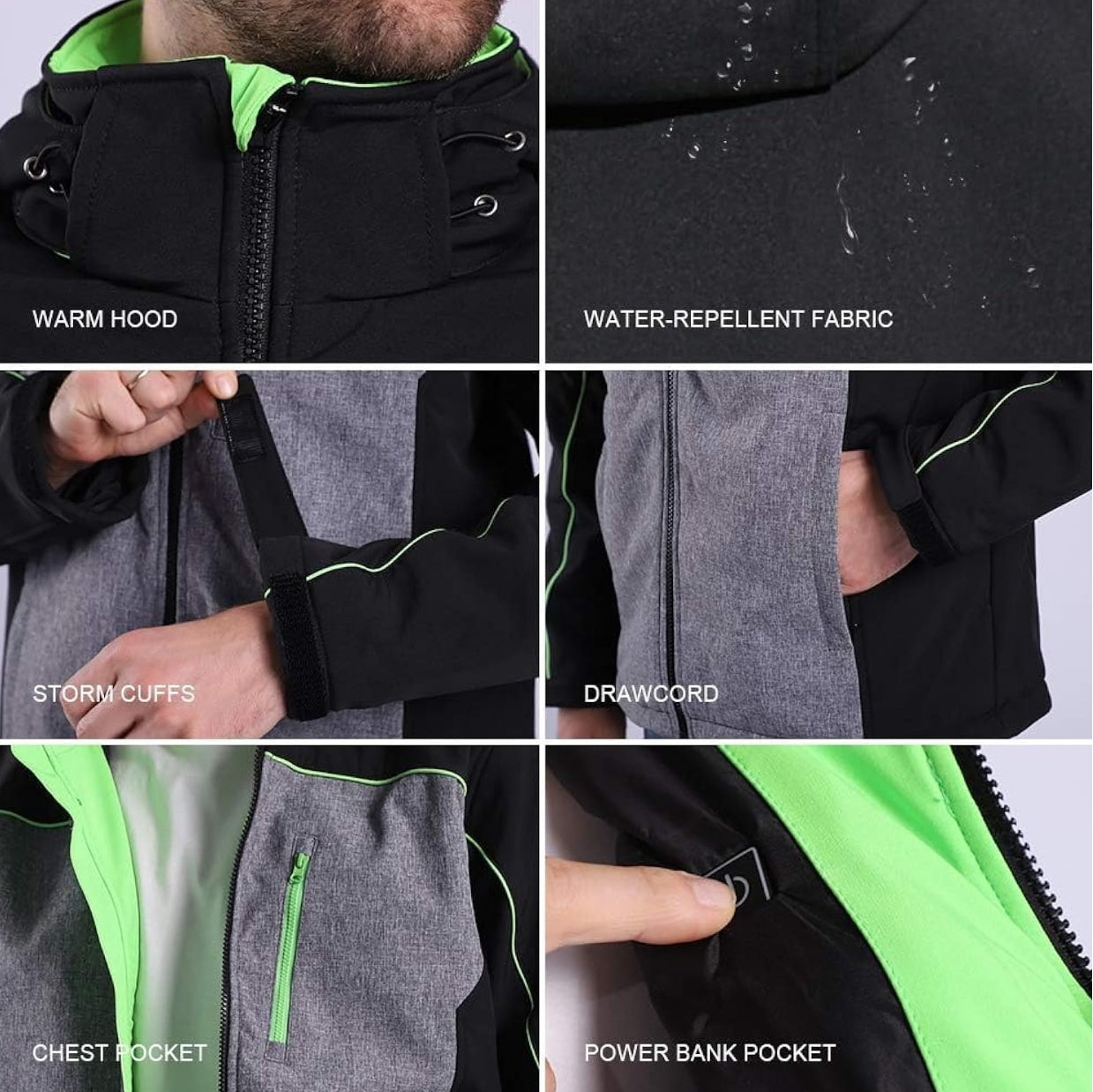 CONQUECO Heated Jacket hoddie Body Wamer: Electric Windproof & Waterproof Jacket with 10000 mah Battery Pack - 3 Heating level for Sports & Outdoor