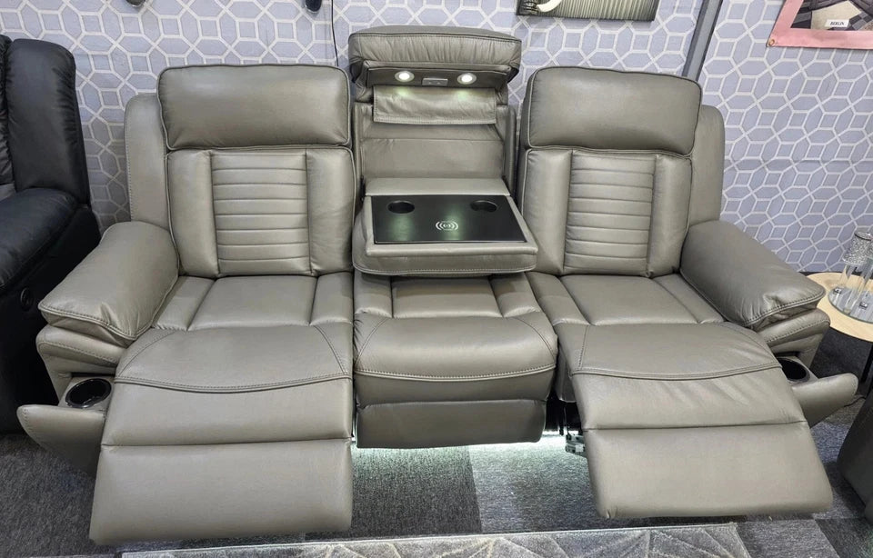 Sevilla Electric Recliner Leather Sofa 3+2 Seater-Cup-holders/Leds/Wireless/USB