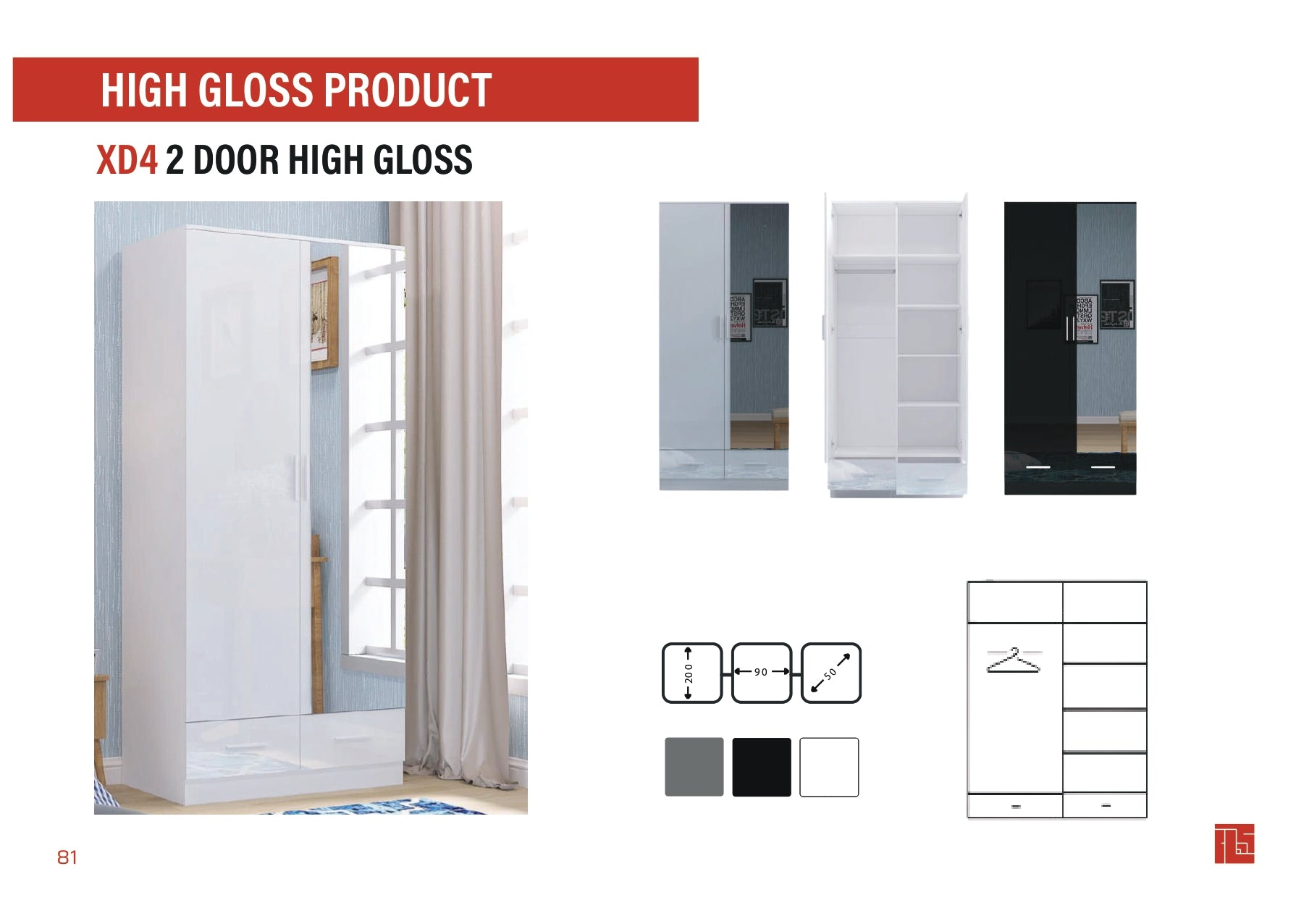 XD4 2 Door High Gloss Wardrobe